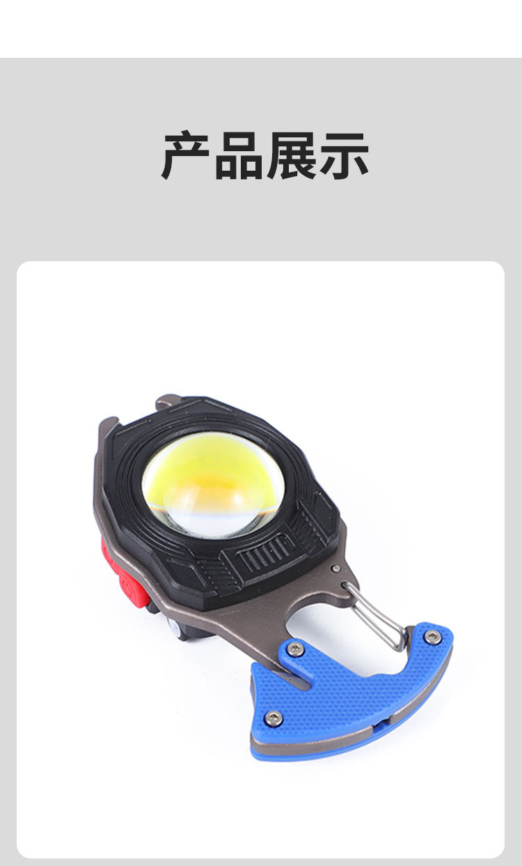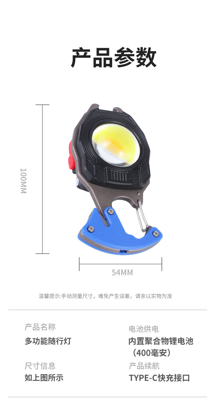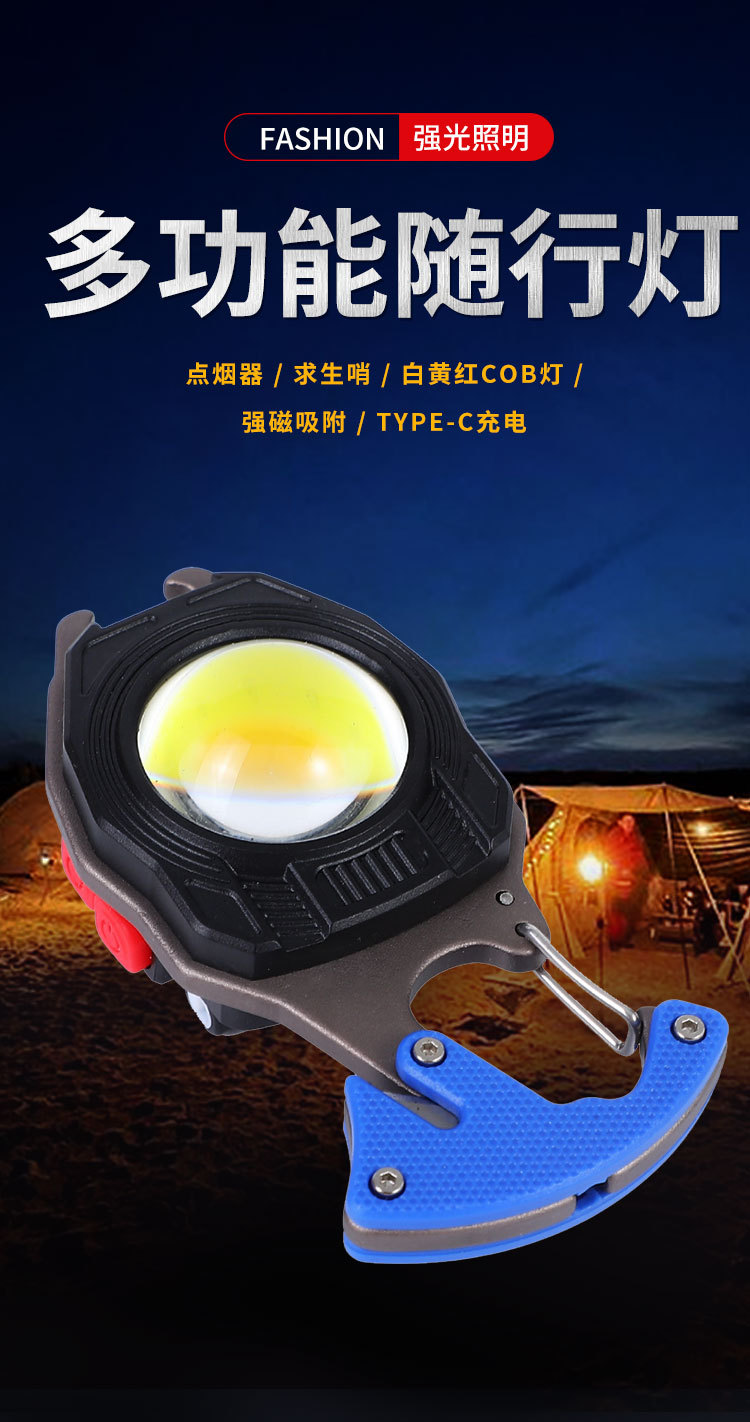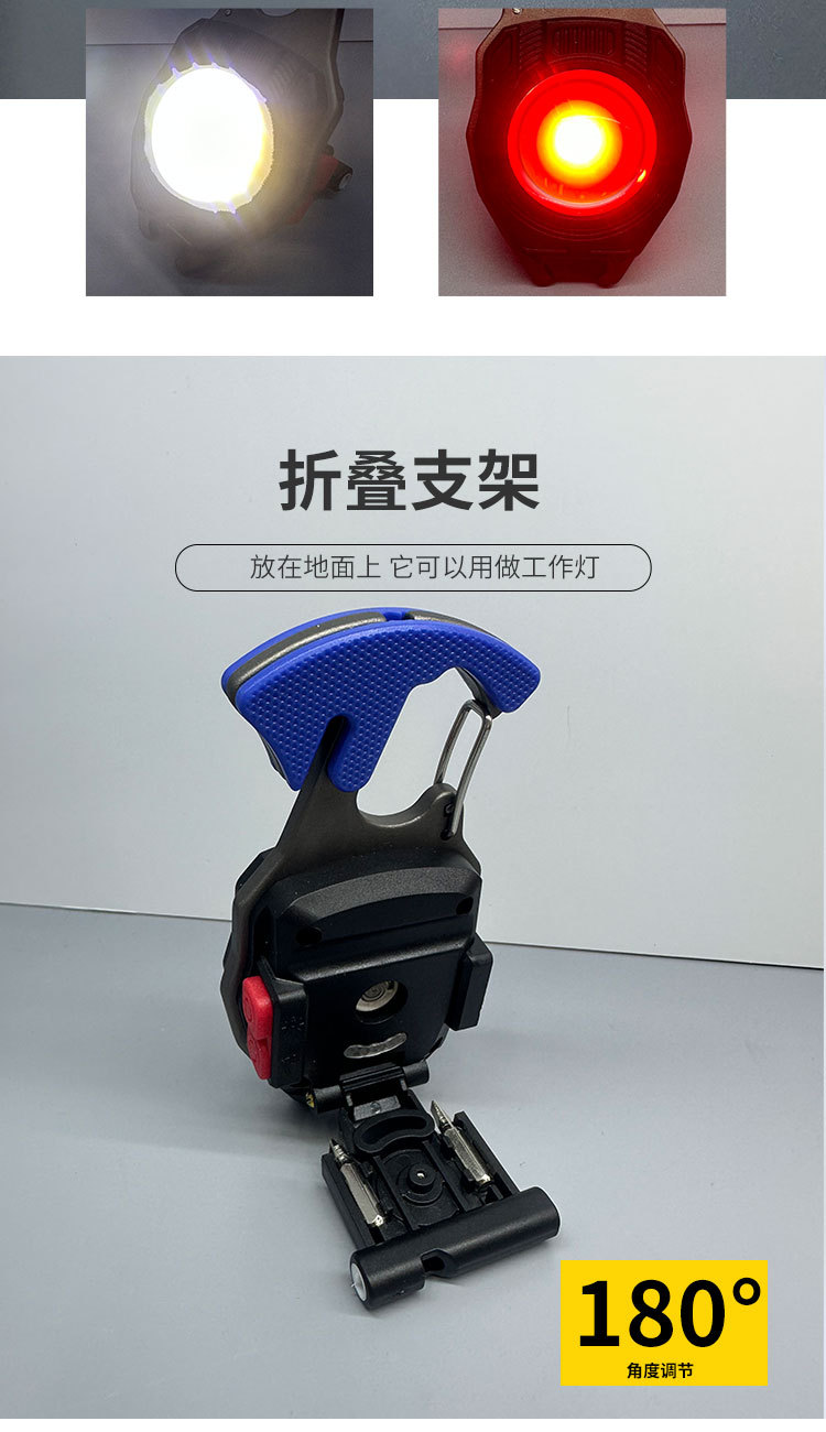 Portable USB auto repair work light, COB camp light, LED red and blue maintenance warning light, high-intensity flashlight
