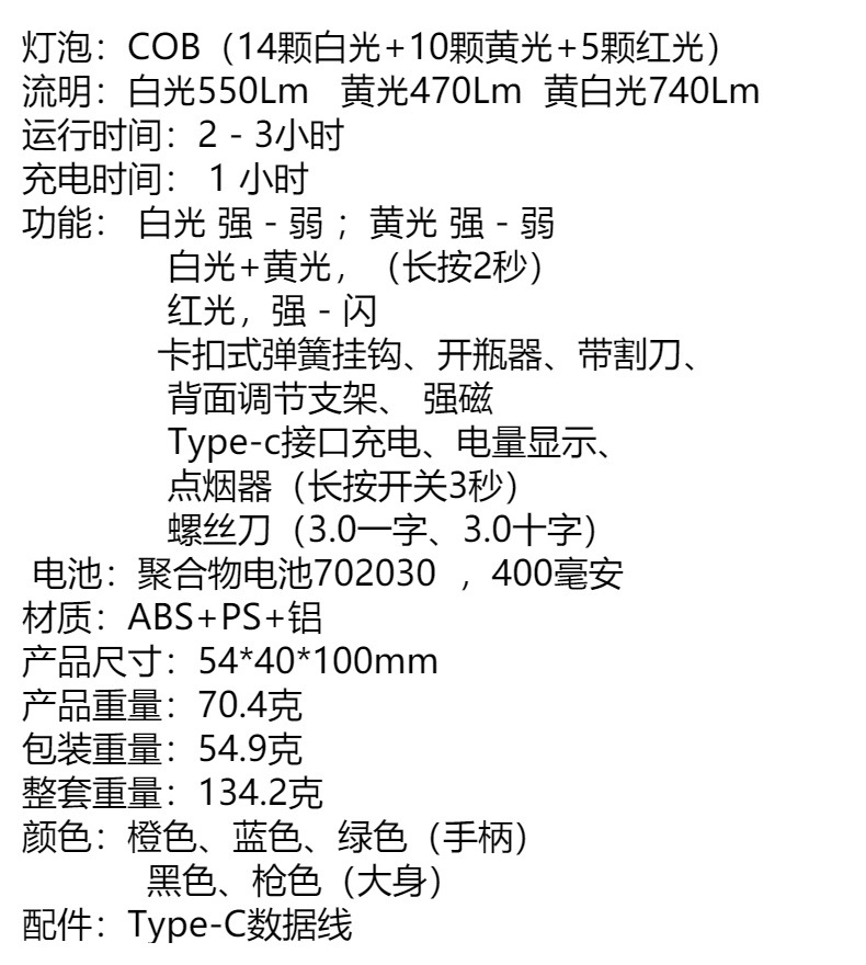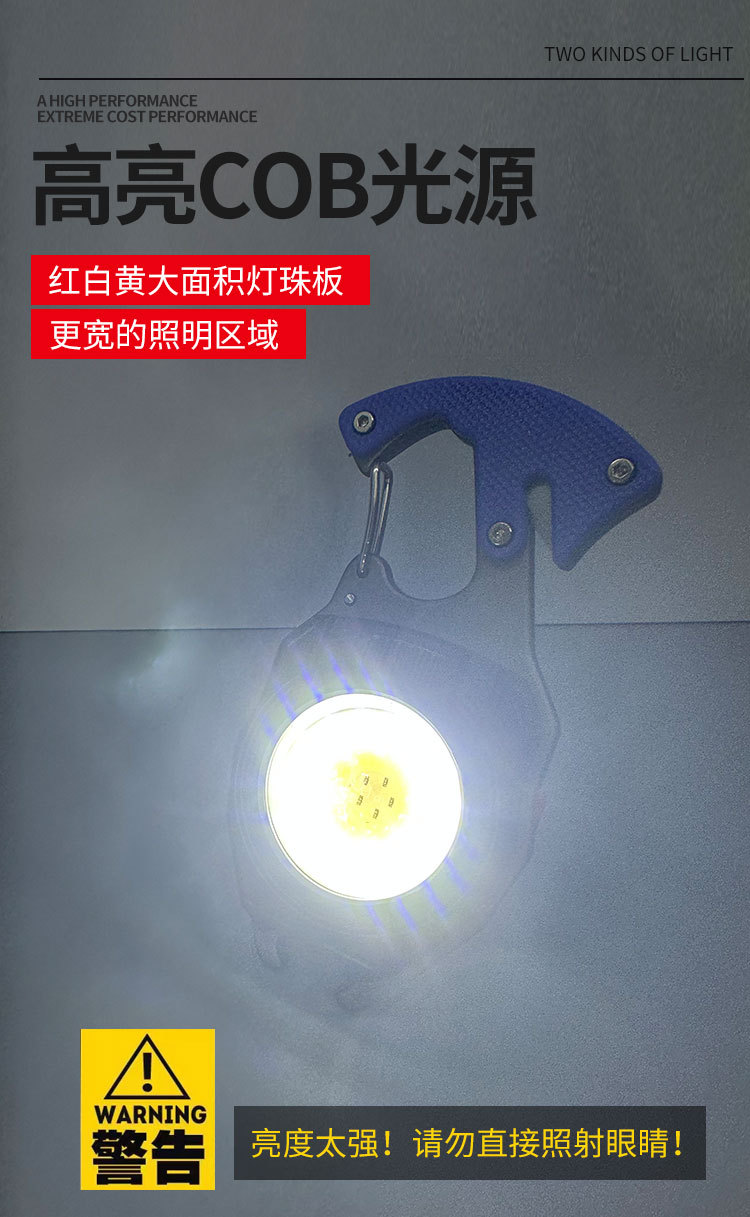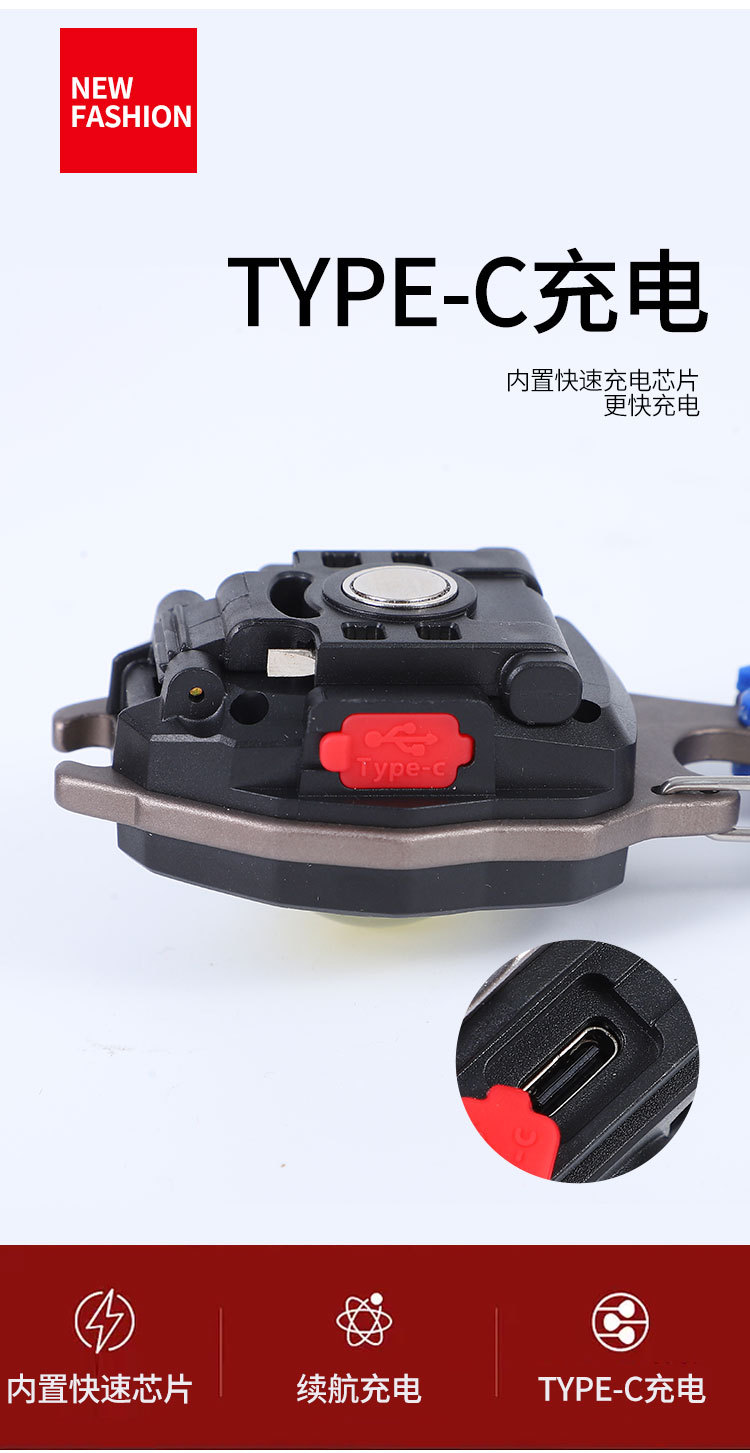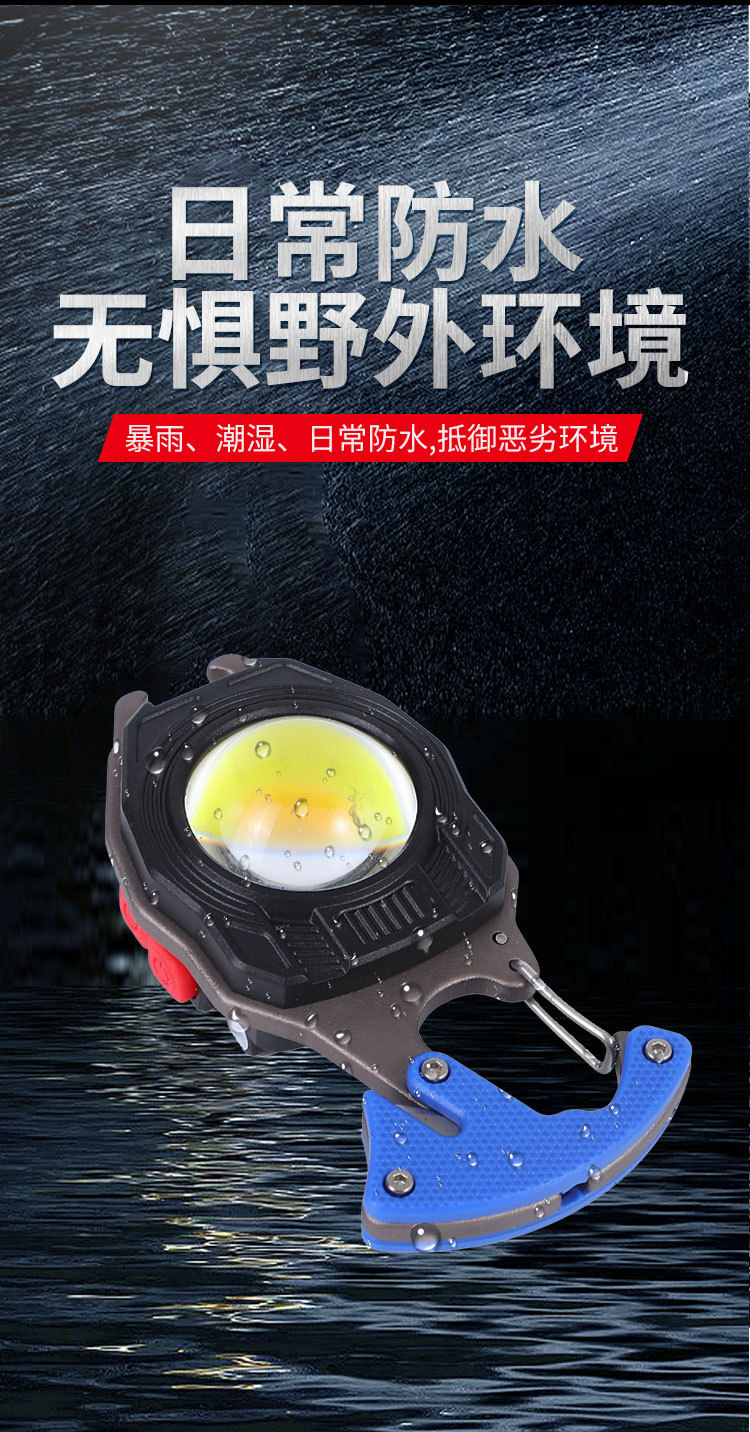 Portable USB auto repair work light, COB camp light, LED red and blue maintenance warning light, high-intensity flashlight